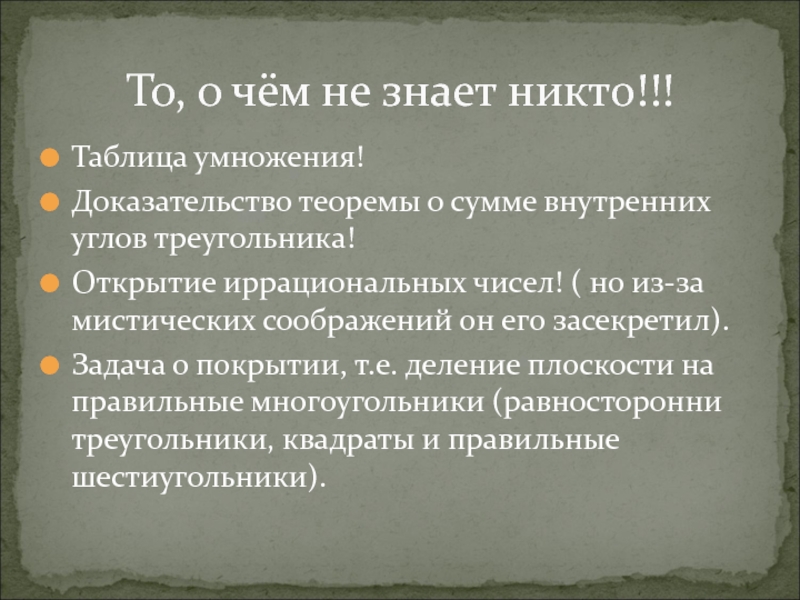 Это сайт презентаций, где можно хранить и обмениваться своими презентациями, докладами, проектами, шаблонами в формате PowerPoint с другими пользователями. Мы помогаем школьникам, студентам, учителям, преподавателям хранить и обмениваться учебными материалами.