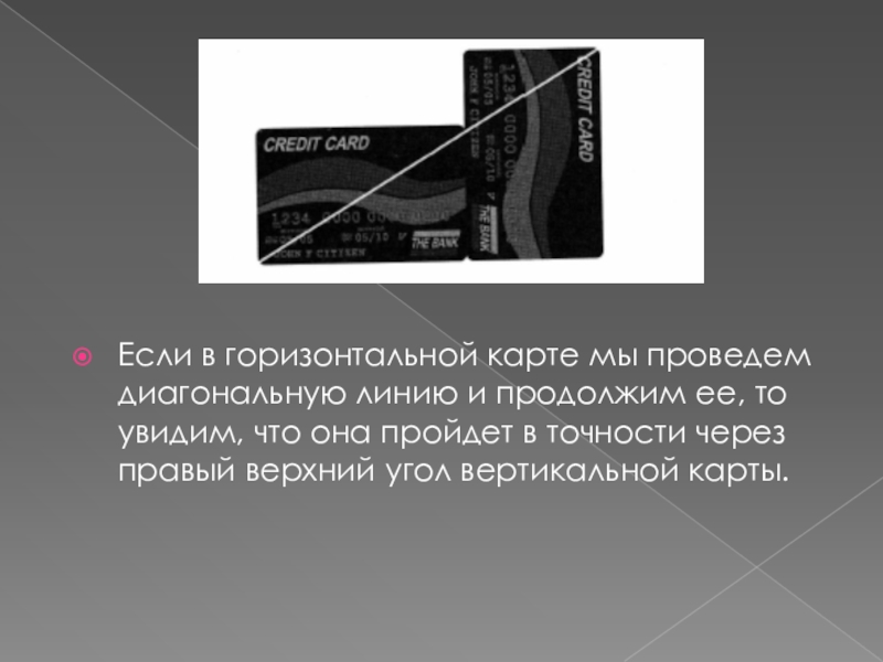 может показаться обычным прямоугольником. Проделаем эксперимент с двумя кредитными картами. Положим одну из них горизонтально, а другую вертикально, так чтобы их нижние стороны находились на одной линии