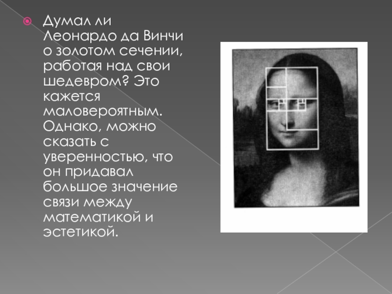 Слайд 10Думал ли Леонардо да Винчи о золотом сечении, работая над свои