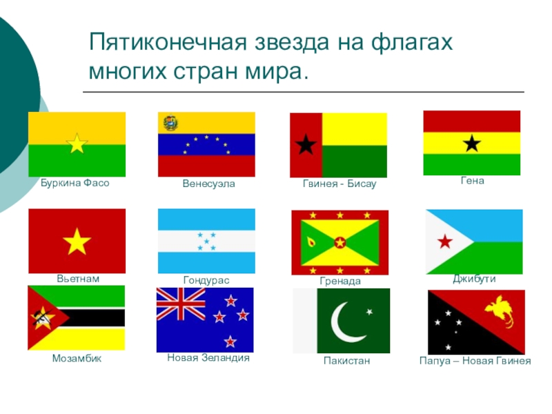 Слайд 30Пятиконечная звезда на флагах многих стран мира.