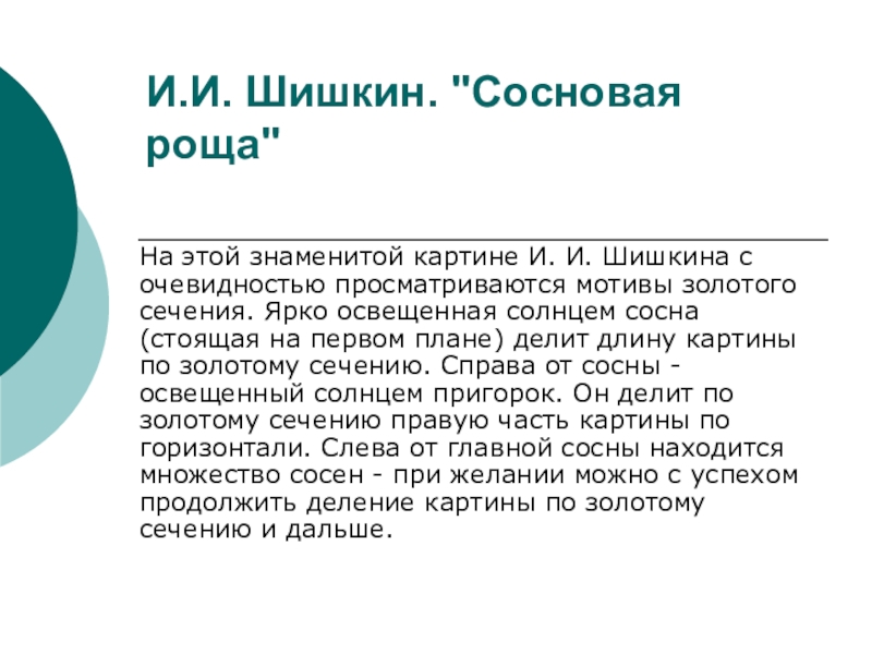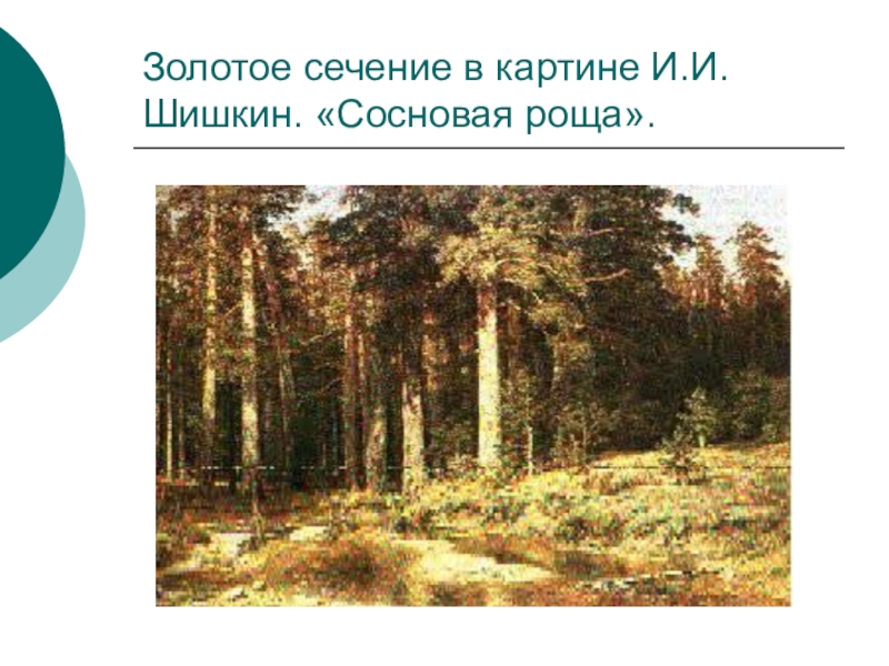 Слайд 24Золотое сечение в картине И.И.Шишкин. «Сосновая роща».
