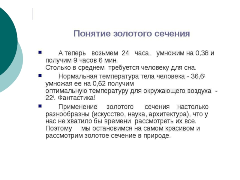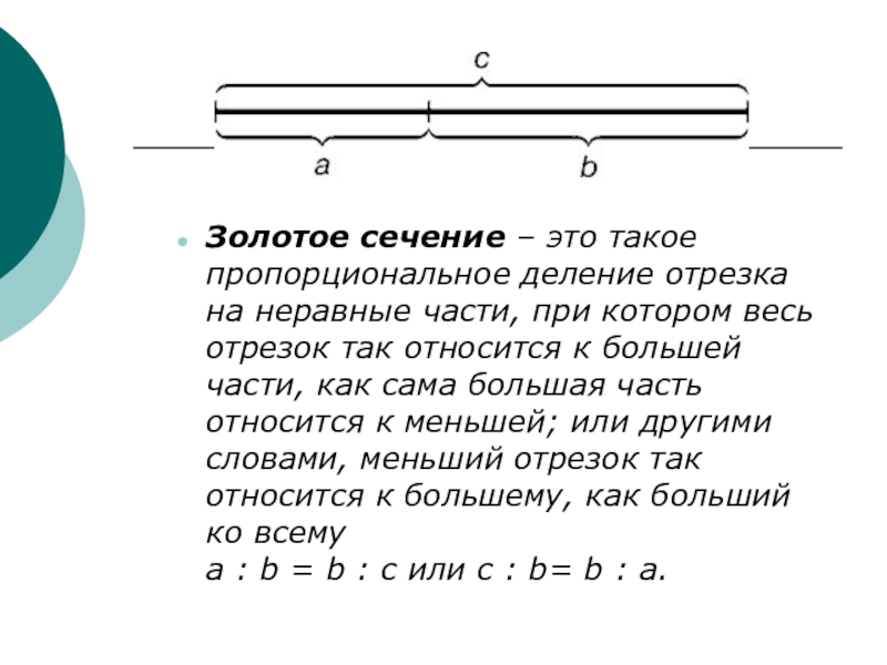 Слайд 6Золотое сечение – это такое пропорциональное деление отрезка на неравные части,