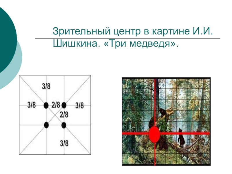 Слайд 26Зрительный центр в картине И.И.Шишкина. «Три медведя».
