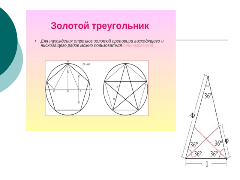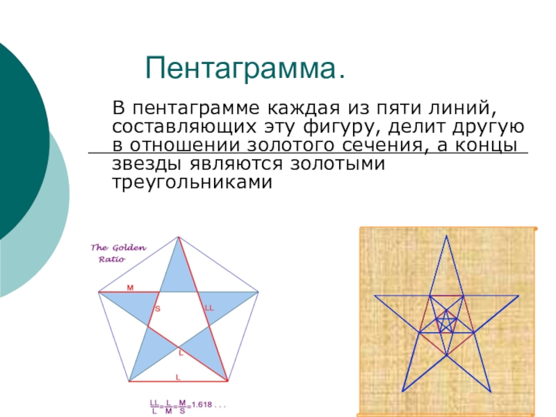 фигуру, делит другую в отношении золотого сечения, а концы звезды являются золотыми треугольниками