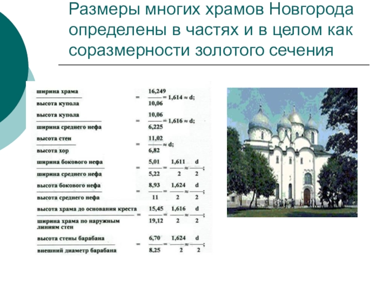 Слайд 19Размеры многих храмов Новгорода определены в частях и в целом как