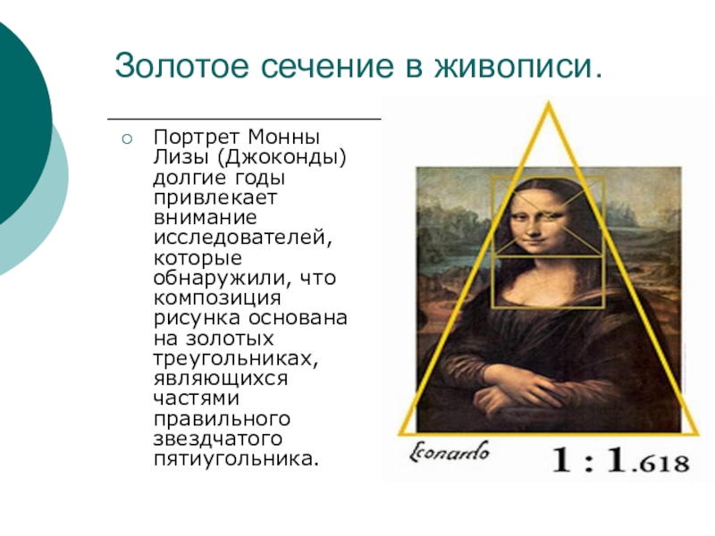исследователей, которые обнаружили, что композиция рисунка основана на золотых треугольниках, являющихся частями правильного звездчатого пятиугольника.