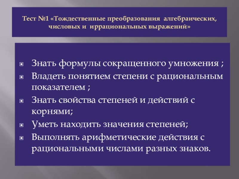 Тесты по математике