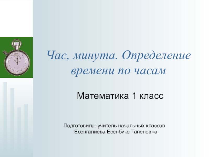 Час, минута. Определение времени по часамМатематика 1 классПодготовила: учитель начальных классов Есенгалиева Есенбике Тапеновна