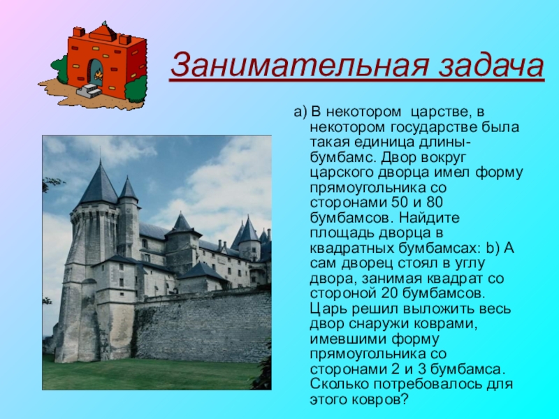 Занимательная задача a) В некотором царстве, в некотором государстве была такая единица длины- бумбамс. Двор вокруг царского