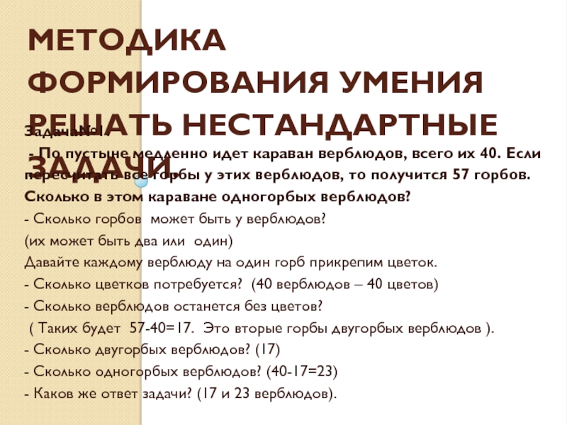 - Каков же ответ задачи? (17 и 23 верблюдов).