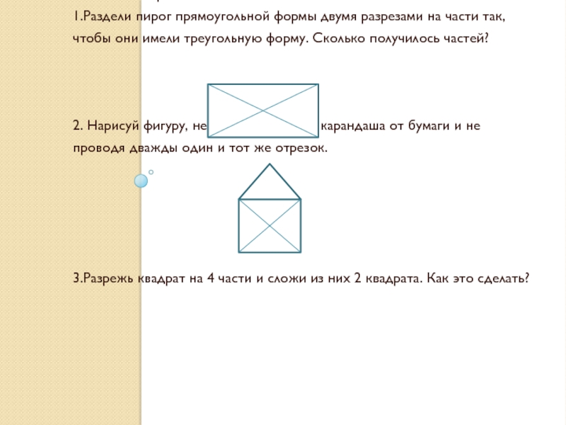 1.Раздели пирог прямоугольной формы двумя разрезами на части
