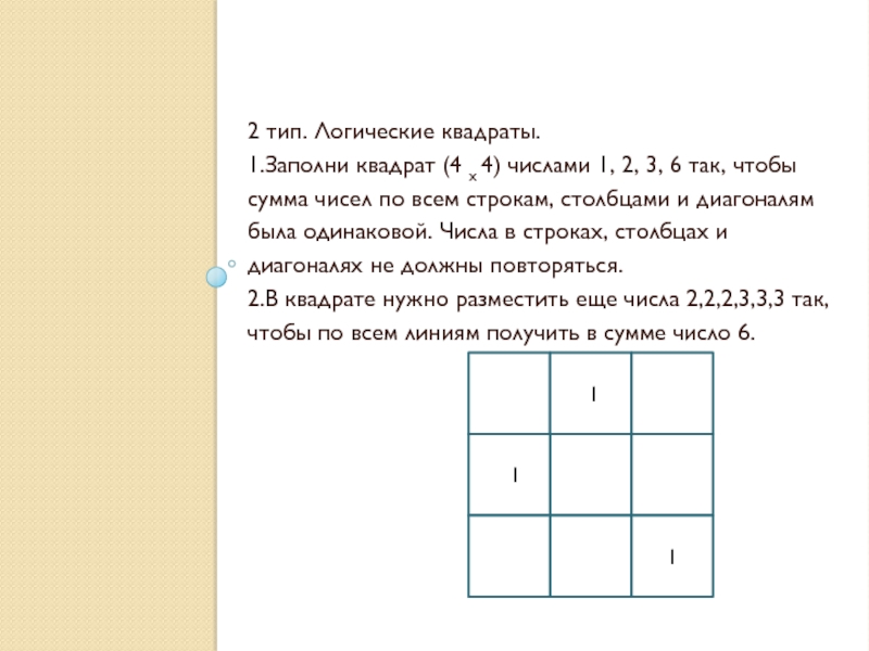 1.Заполни квадрат (4 х 4) числами 1, 2,
