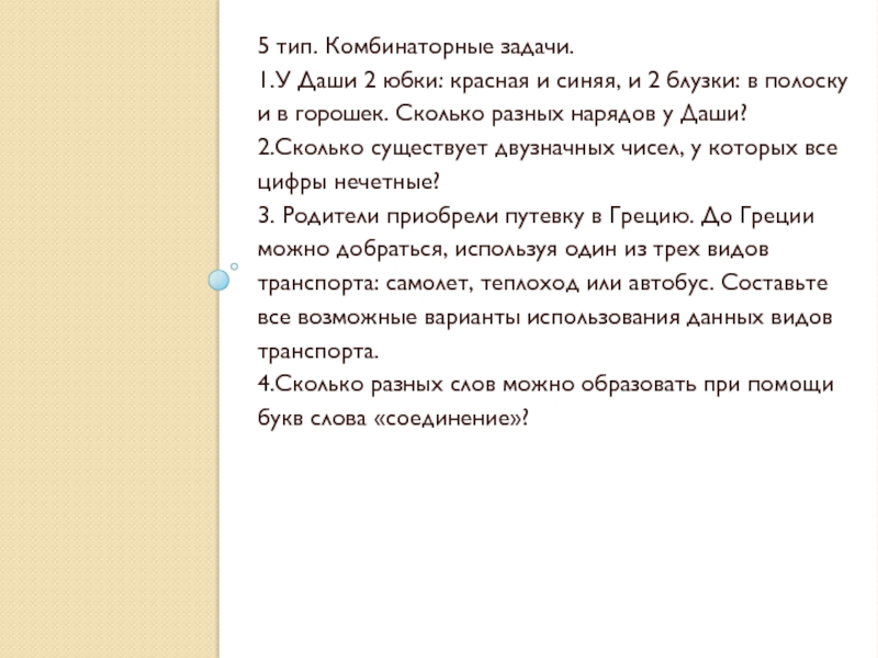 2 блузки: в полоску и в горошек. Сколько разных нарядов у Даши?
