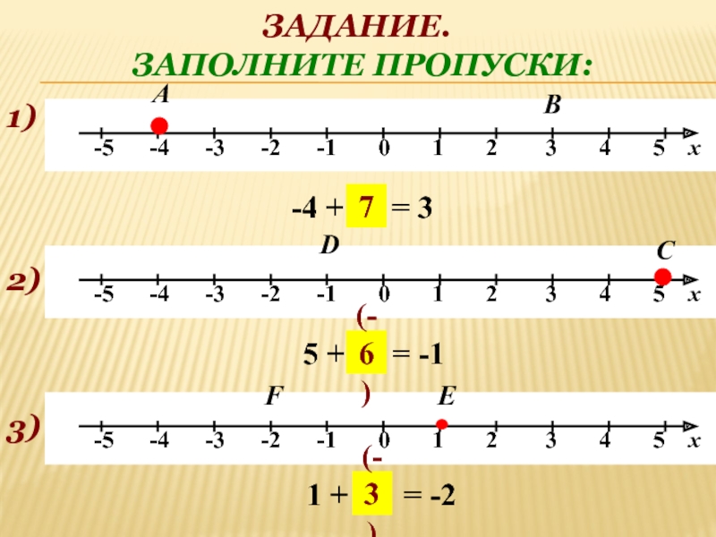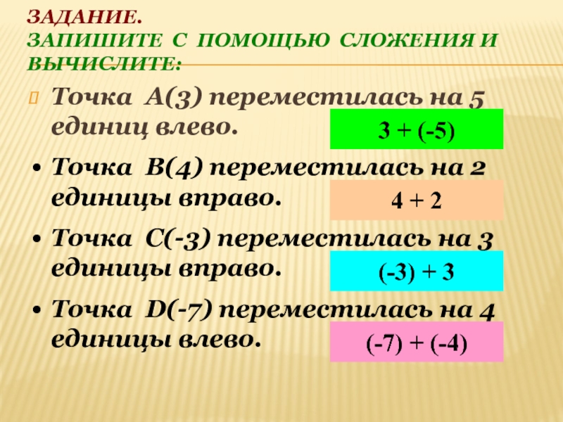 Точка D(-7) переместилась на 4 единицы влево.