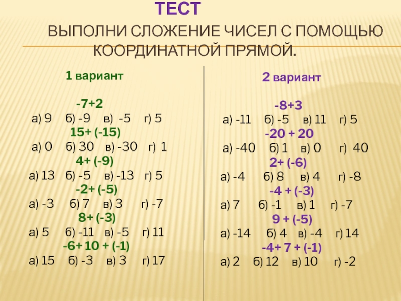 а) 5 б) -11 в) -5 г) 11