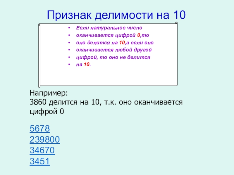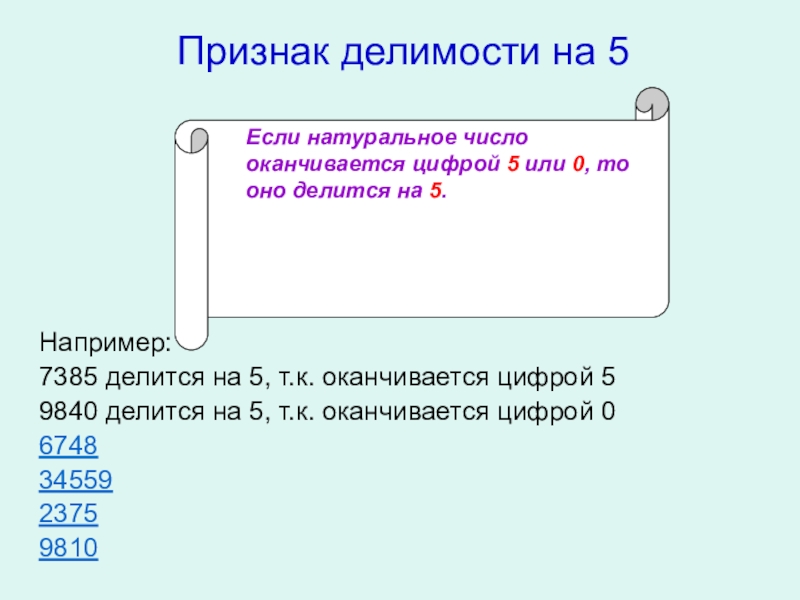 Если натуральное число оканчивается цифрой 5 или 0, то оно делится на 5.