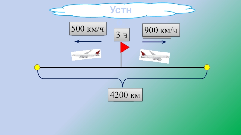 Устно.9 км/ч50 км/ч? км3 ч500 км/ч900 км/ч4200 км