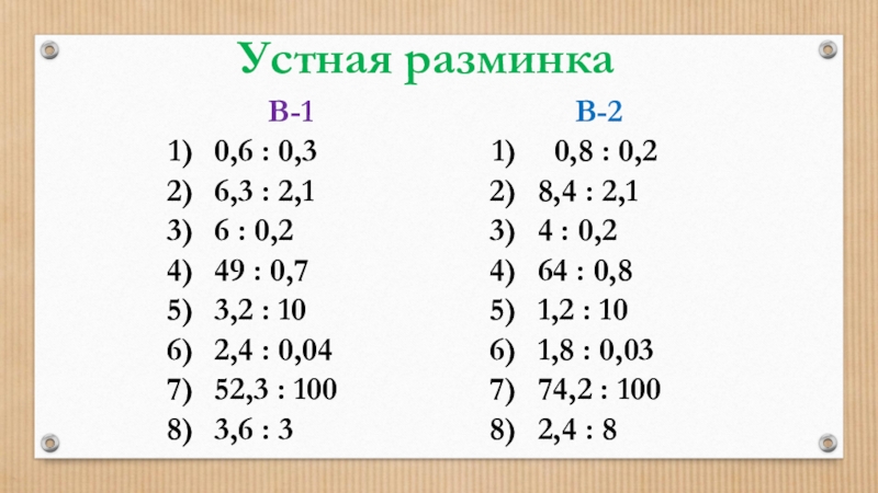 Презентация, доклад по математики на тему Деление десятичных дробей (5 класс)