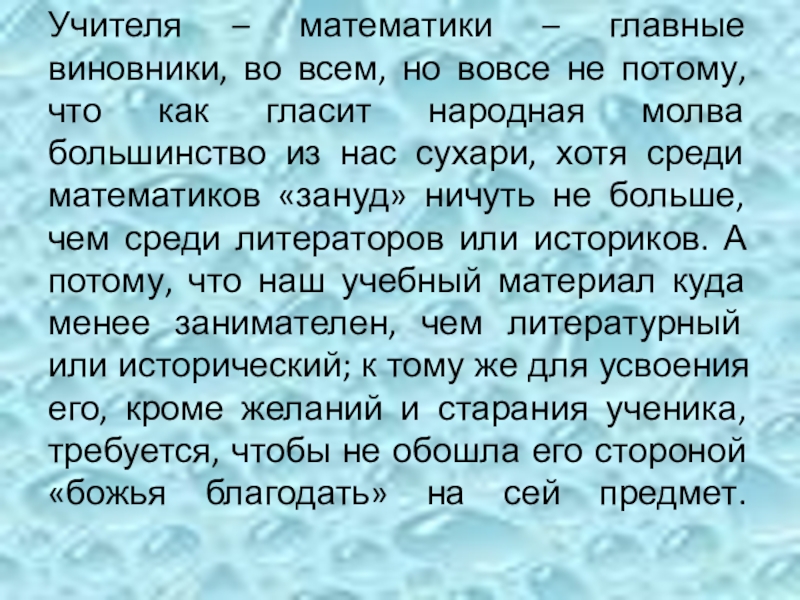 Слайд 4Учителя – математики – главные виновники, во всем, но вовсе не