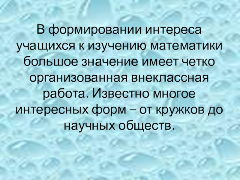 Слайд 10В формировании интереса учащихся к изучению математики большое значение имеет четко