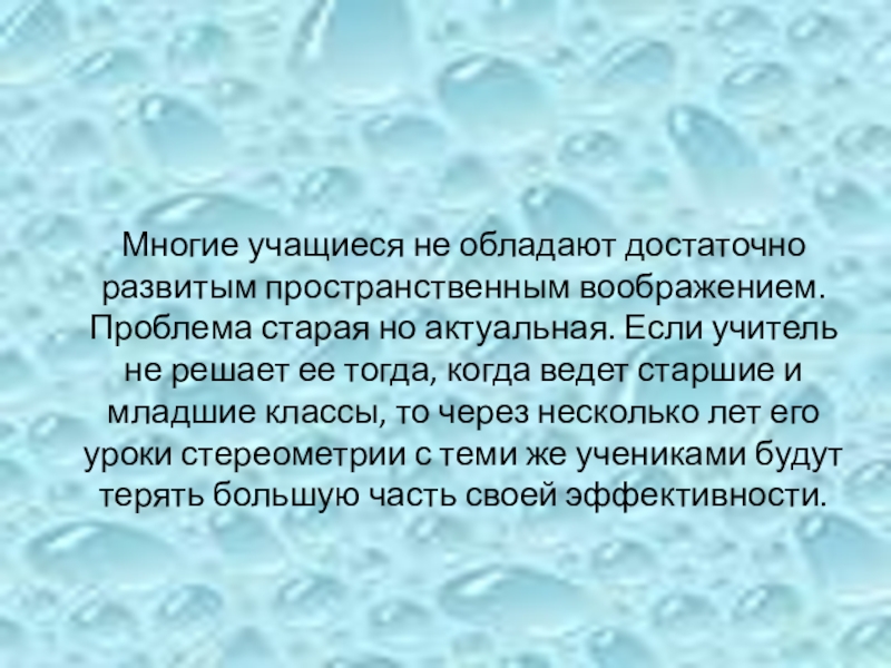 Слайд 12Многие учащиеся не обладают достаточно развитым пространственным воображением. Проблема старая но