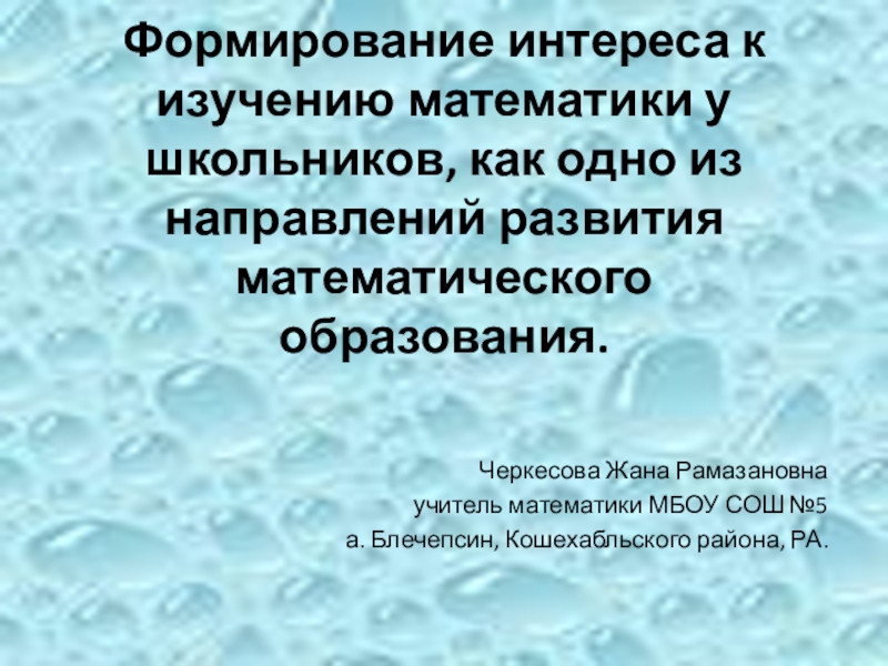 Слайд 1Формирование интереса к изучению математики у школьников, как одно из направлений