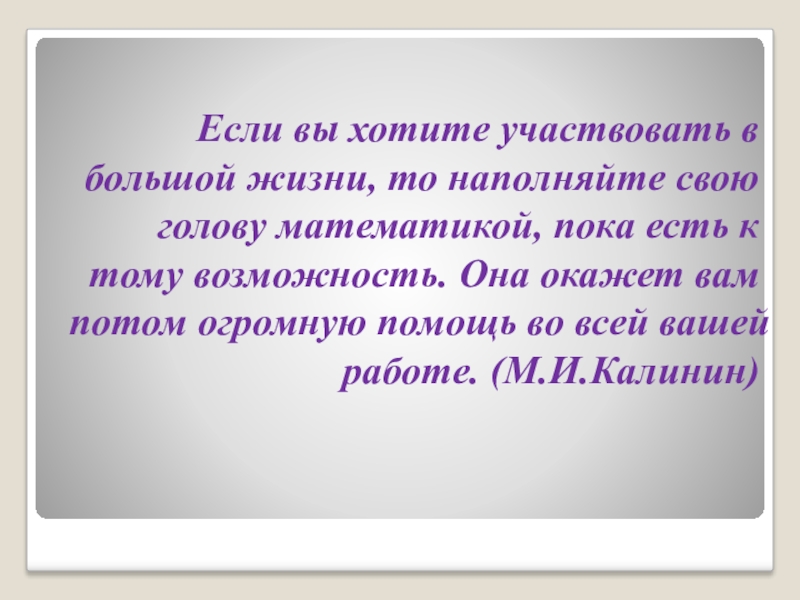 математикой, пока есть к тому возможность. Она окажет вам потом огромную помощь во всей вашей работе. (М.И.Калинин)