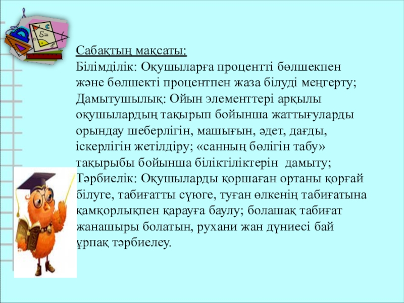 2) процент тақырыбына байланысты тарихи мәлімет жинау.