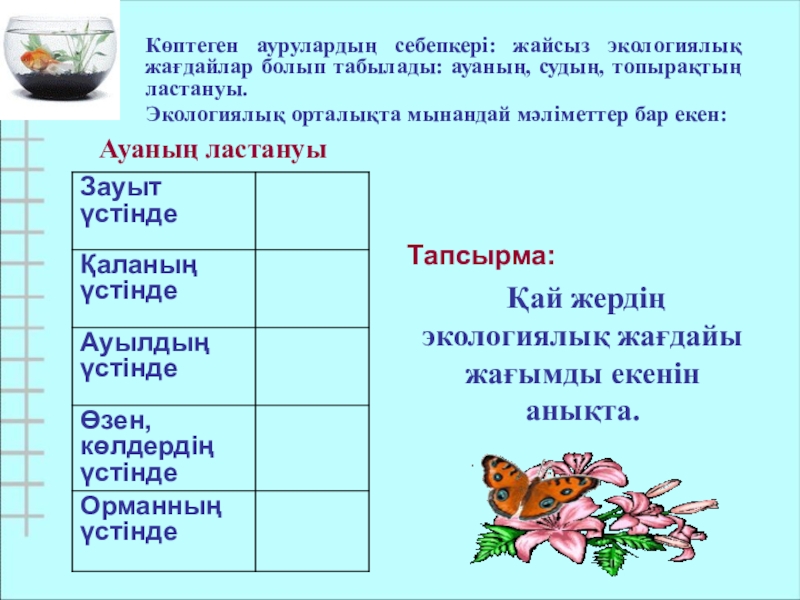 Қай жердің экологиялық жағдайы жағымды екенін анықта.