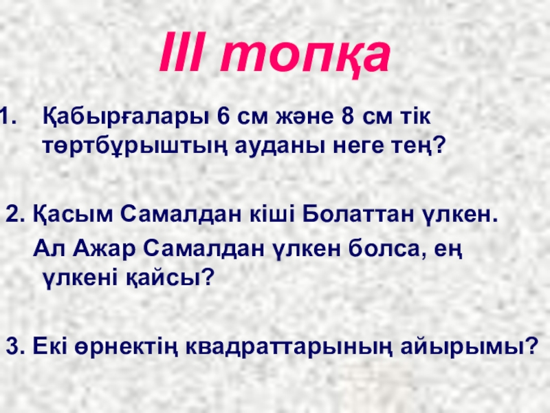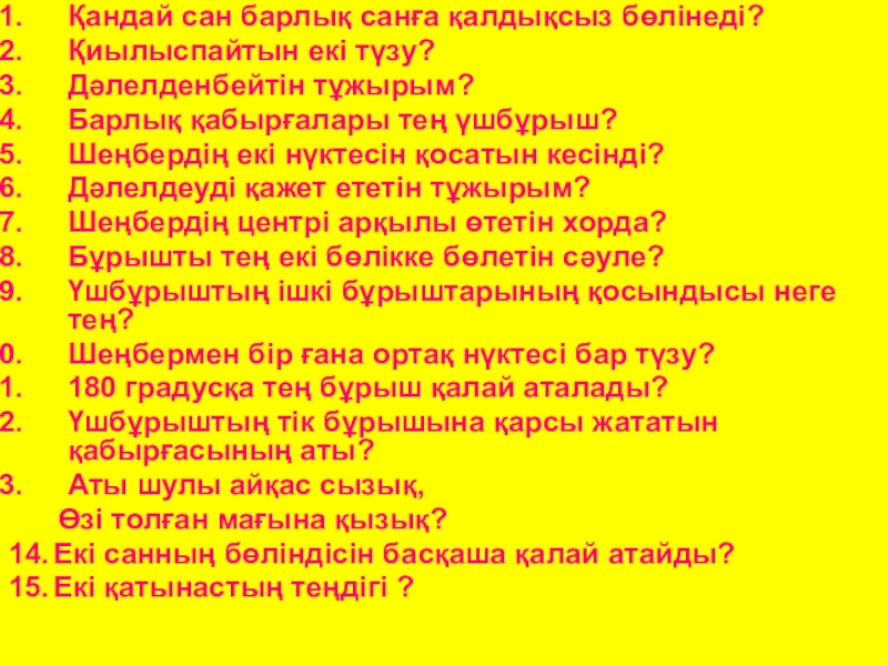 2. Үстел беті төртбұрышты, оның бір бұрышын арамен кесіп алсақ, неше бұрыш қалады?