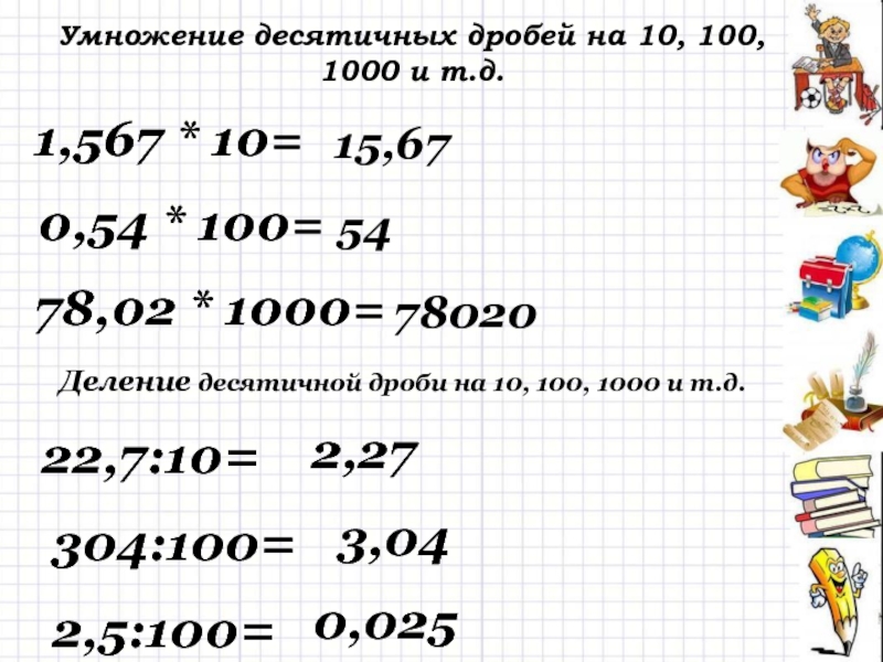 Деление десятичной дроби на 10, 100, 1000 и т.д.