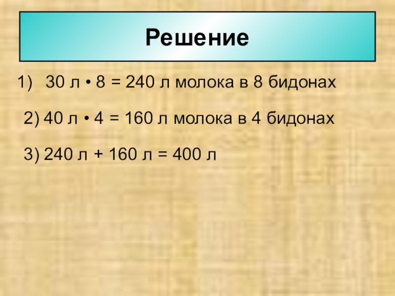 3) 240 л + 160 л = 400 л