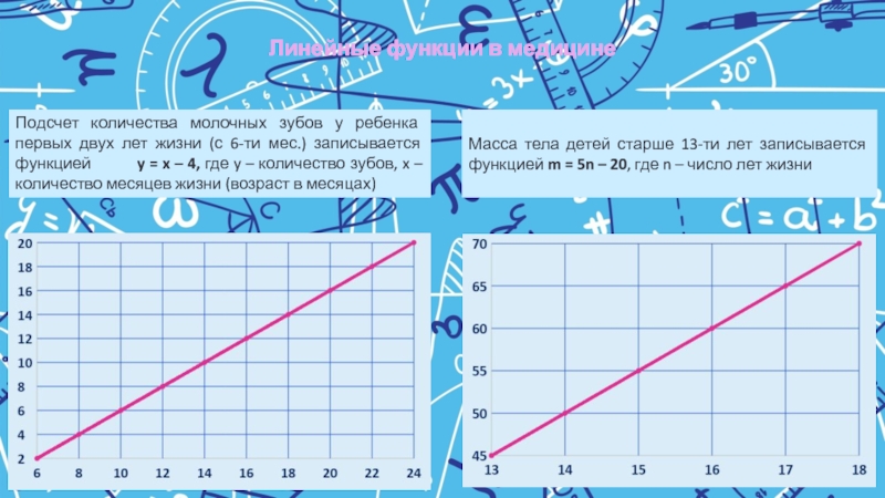 Масса тела детей старше 13-ти лет записывается функцией m = 5n – 20, где n – число лет жизни