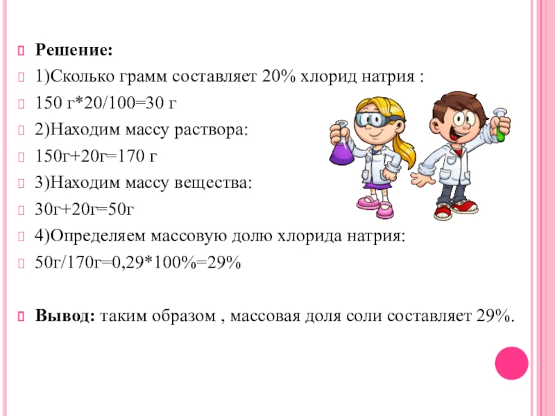 Вывод: таким образом , массовая доля соли составляет 29%.