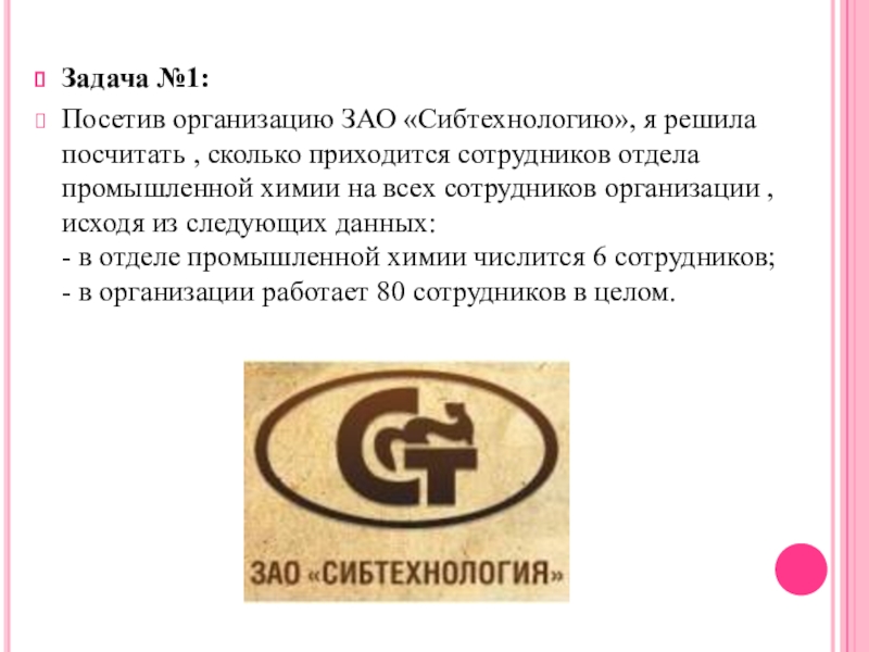 Посетив организацию ЗАО «Сибтехнологию», я решила посчитать , сколько
