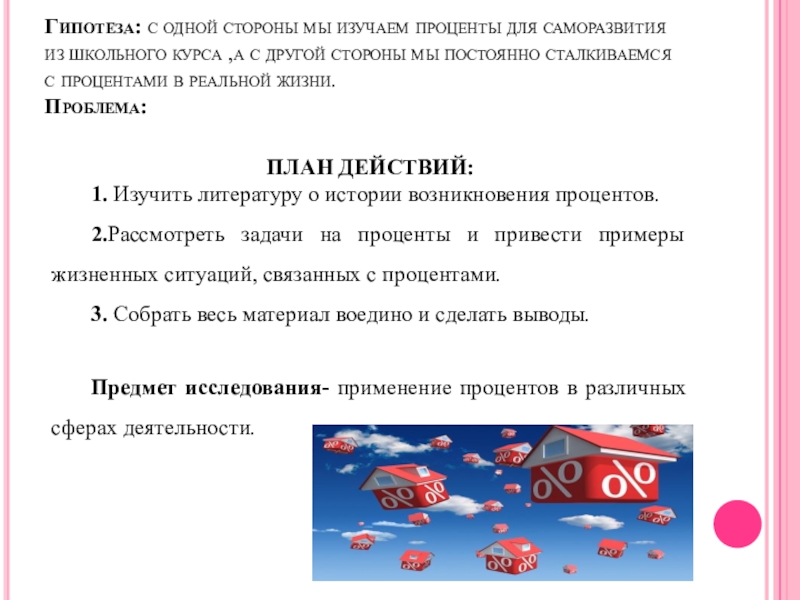 Предмет исследования- применение процентов в различных сферах деятельности.
