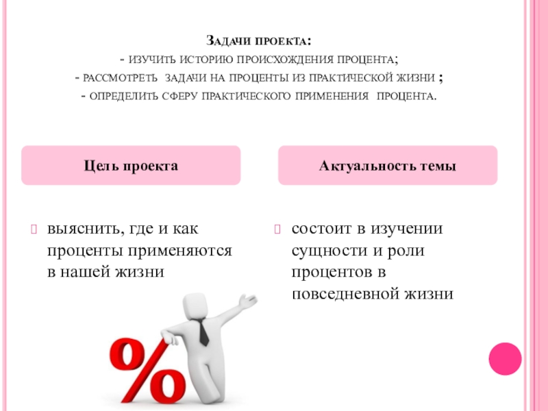 состоит в изучении сущности и роли процентов в повседневной жизни