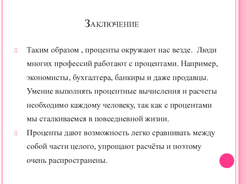 Таким образом , проценты окружают нас везде. Люди многих профессий работают