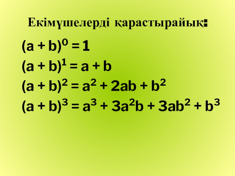 Слайд 2Екімүшелерді қарастырайық: