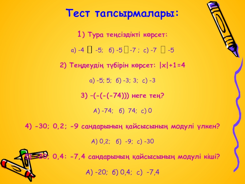 4) -30; 0,2; -9 сандарының қайсысының модулі үлкен?