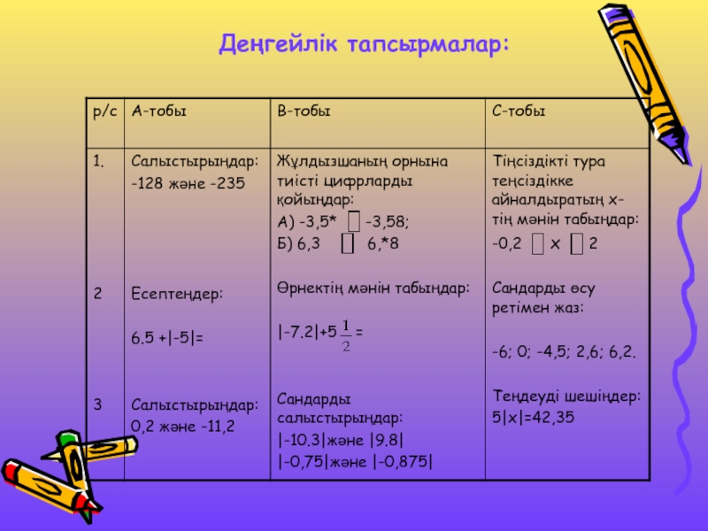 Слайд 1Рационал сандарды салыстыру тақырыбына есептер шығару