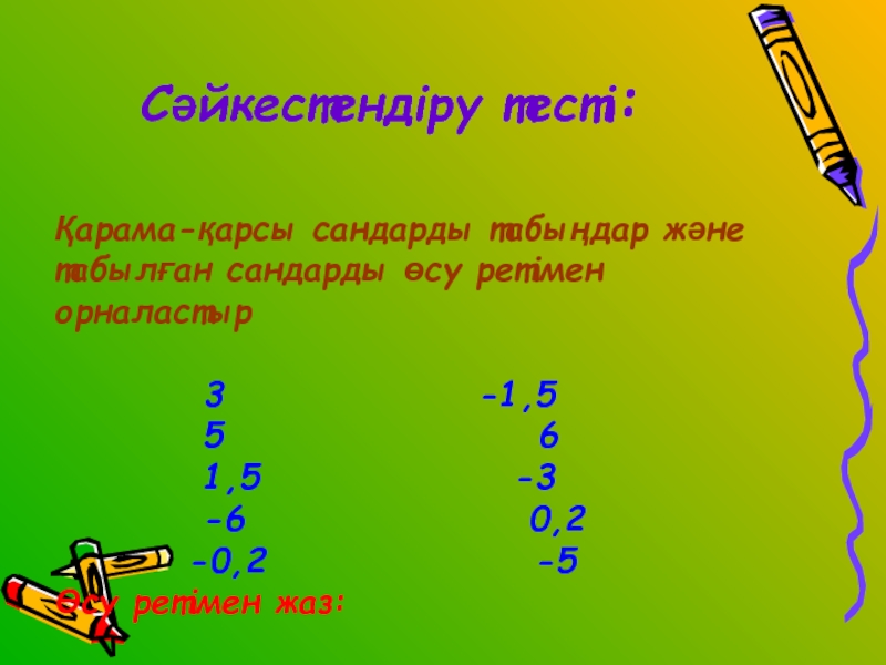 Қарама-қарсы сандарды табыңдар және табылған сандарды өсу ретімен