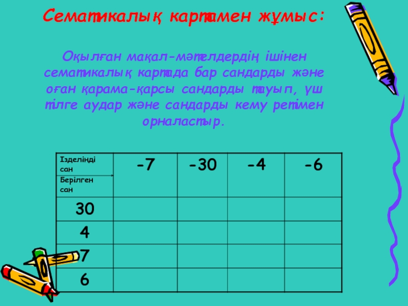 Оқылған мақал-мәтелдердің ішінен сематикалық картада бар сандарды және оған