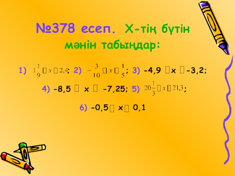 Слайд 8№378 есеп. Х-тің бүтін мәнін табыңдар: