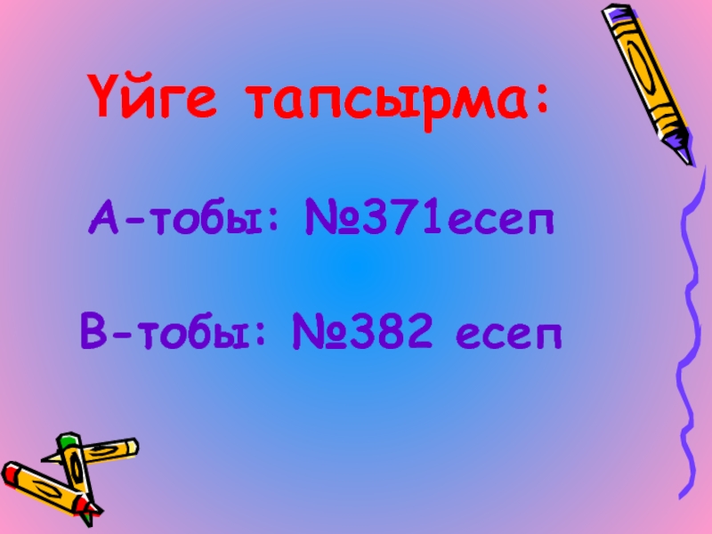 Слайд 2Үй тапсырмаларының шығарылуы: