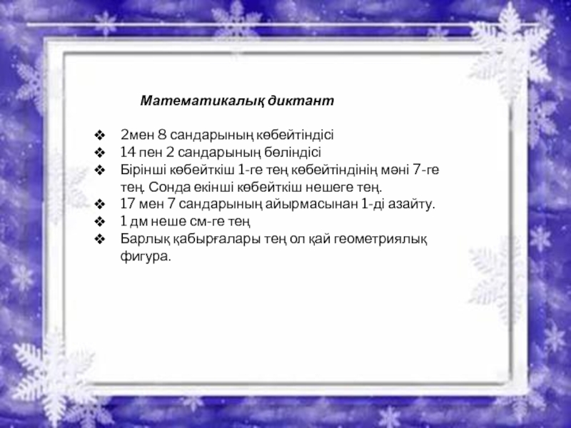 Слайд 9 Математикалық диктант