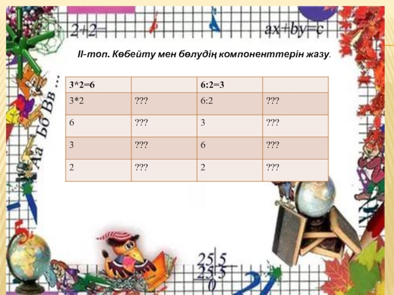 ІІ-топ. Көбейту мен бөлудің компоненттерін жазу.
