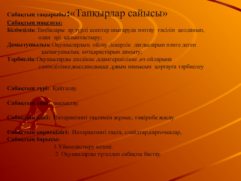 Сабақтың типі: пысықтау.