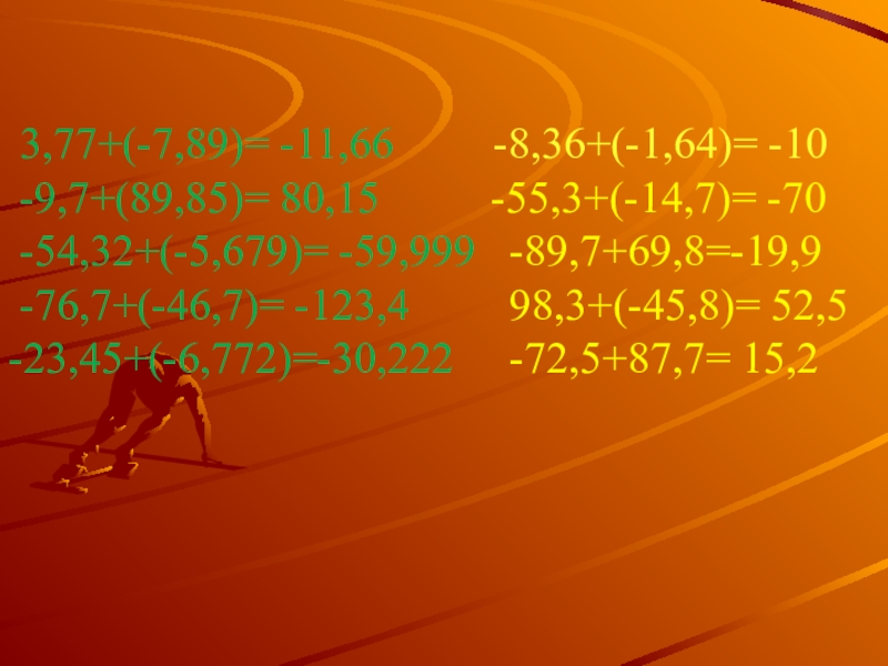 -3,77+(-7,89)= -8,36+(-1,64)=