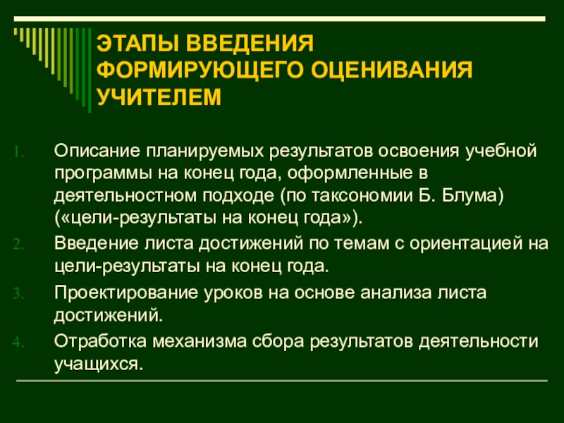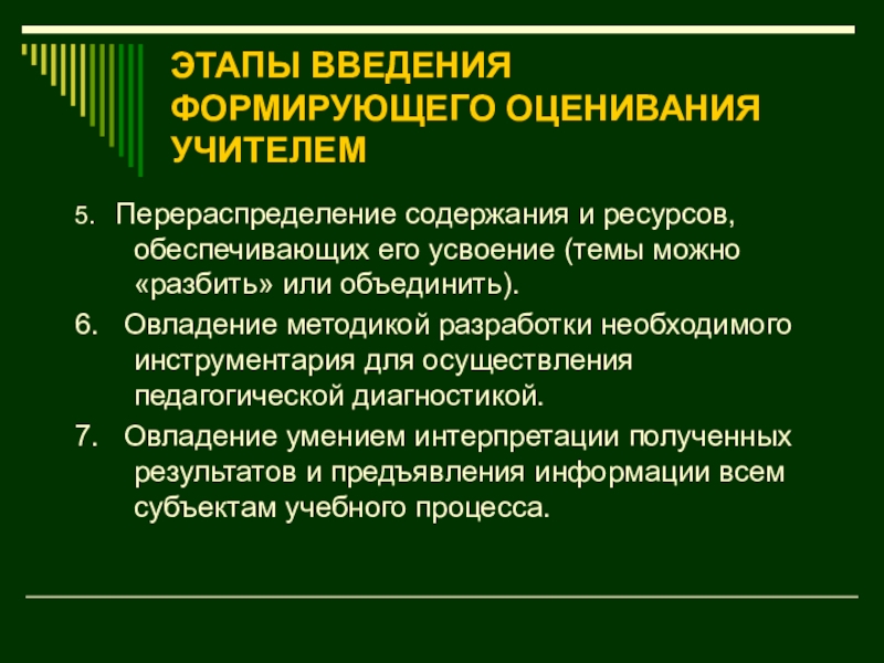 Слайд 25ЭТАПЫ ВВЕДЕНИЯ ФОРМИРУЮЩЕГО ОЦЕНИВАНИЯ УЧИТЕЛЕМ